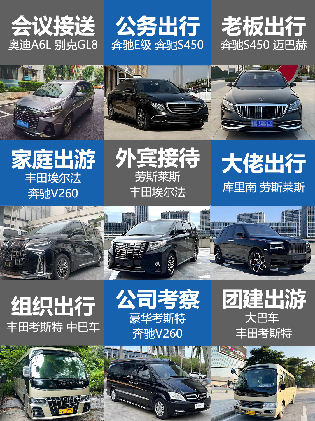 选用奔驰 S 级、宝马 7 系等豪华旗舰车型,以尊崇气场彰显对贵宾的至高礼遇,传递十足重视;